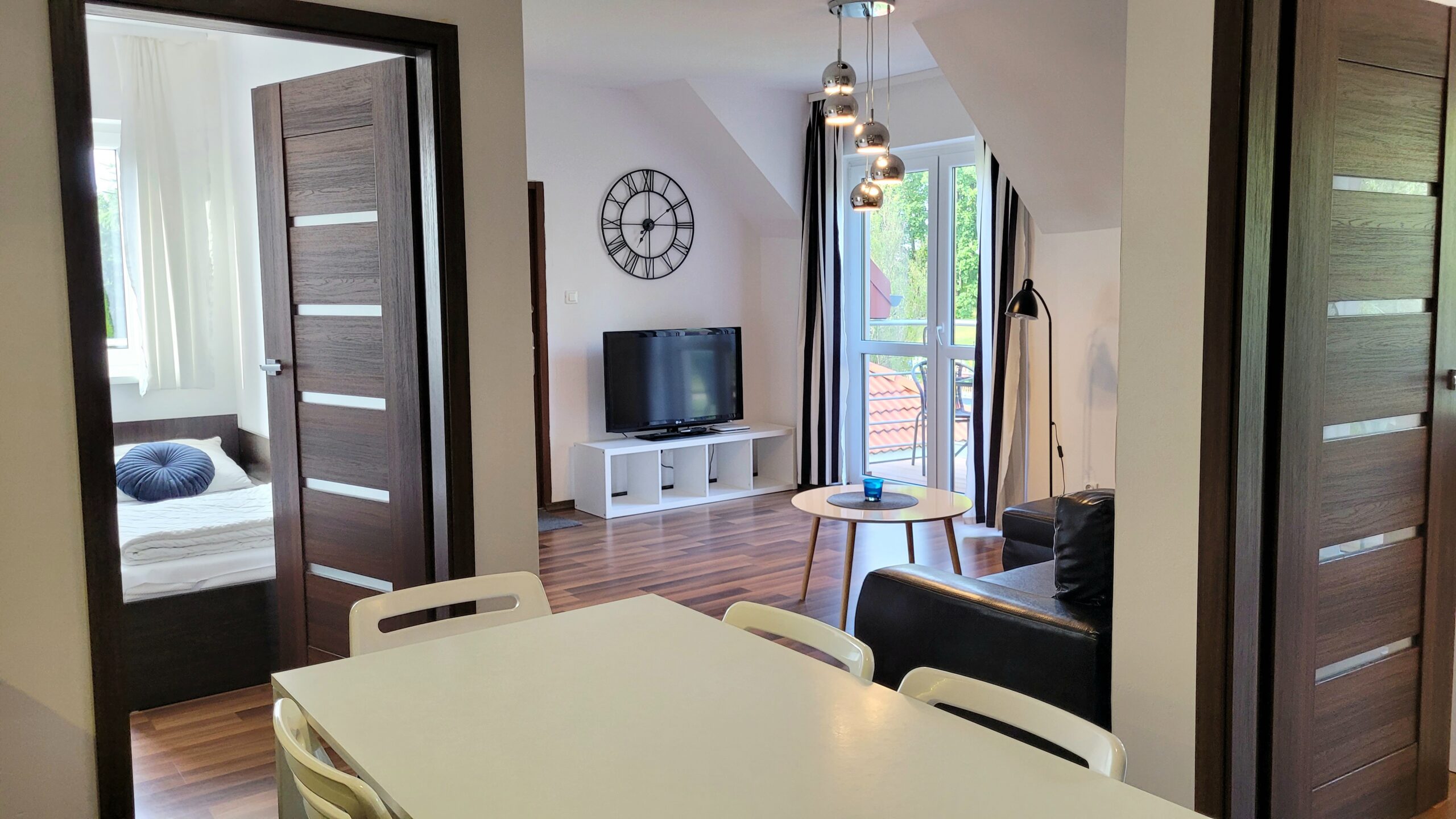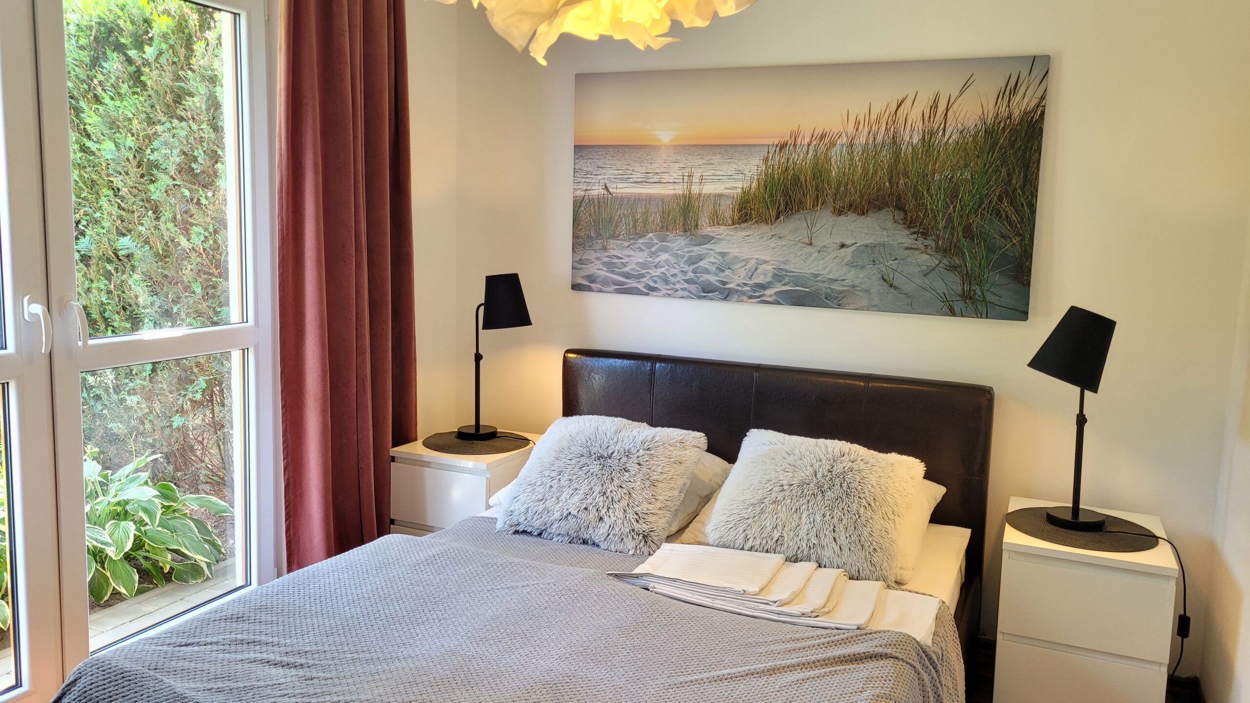Jasny, komfortowy apartament z dwoma balkonami i osobnym wejściem, stworzony do relaksu w cichej, nadmorskiej okolicy.